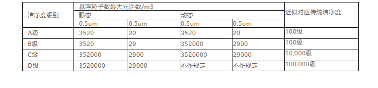 中國(guó)GMP(2010年修訂)新版GMP附錄1 無(wú)菌藥品.第三章.第九條……潔凈區(qū)各級(jí)別空氣懸浮粒子的標(biāo)準(zhǔn)規(guī)定如下